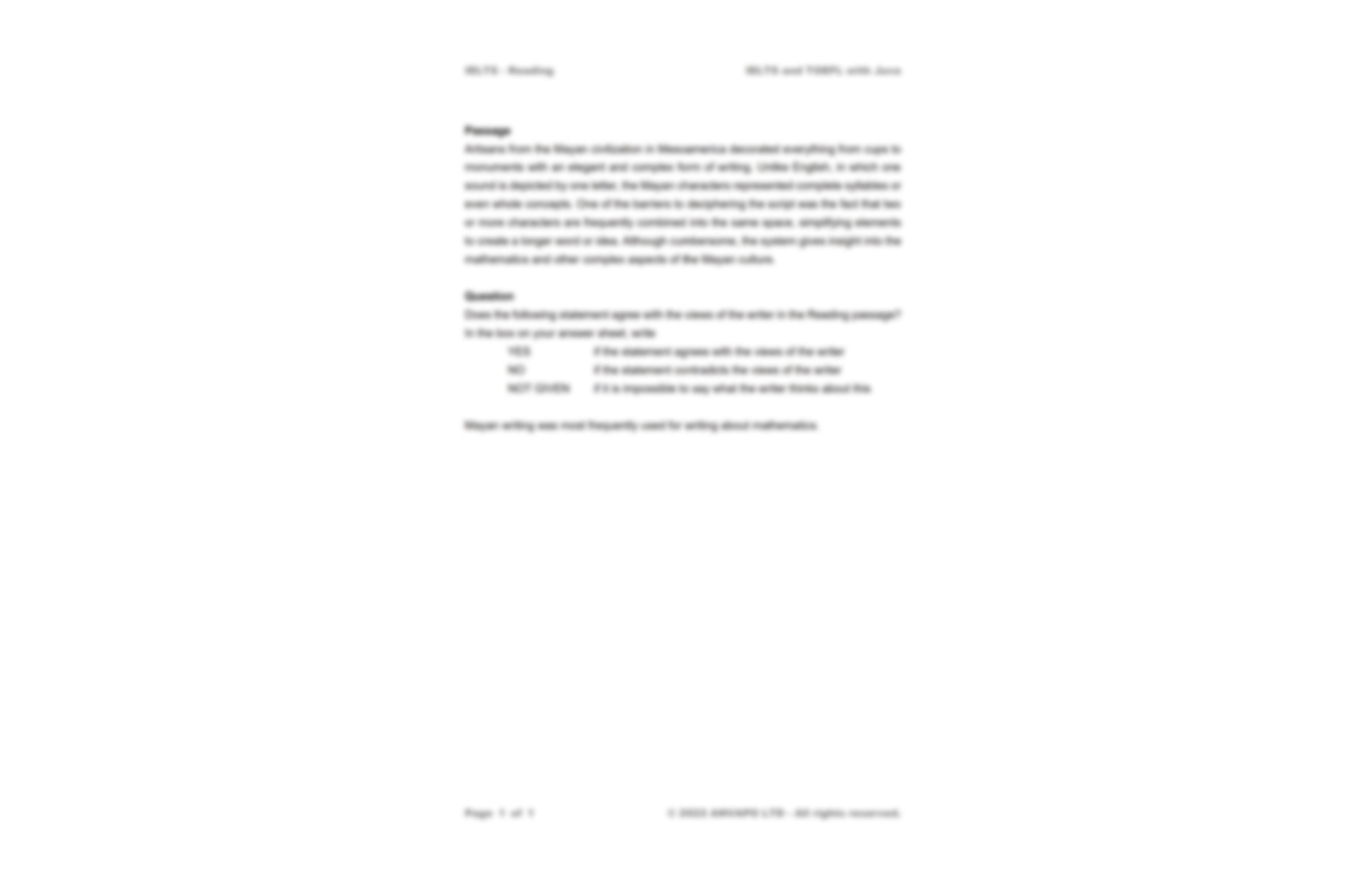 You need a strategy to find the correct answers for YES NO NOT GIVEN Questions. Use this test and have a look at my video to learn how to find the correct answers quickly.