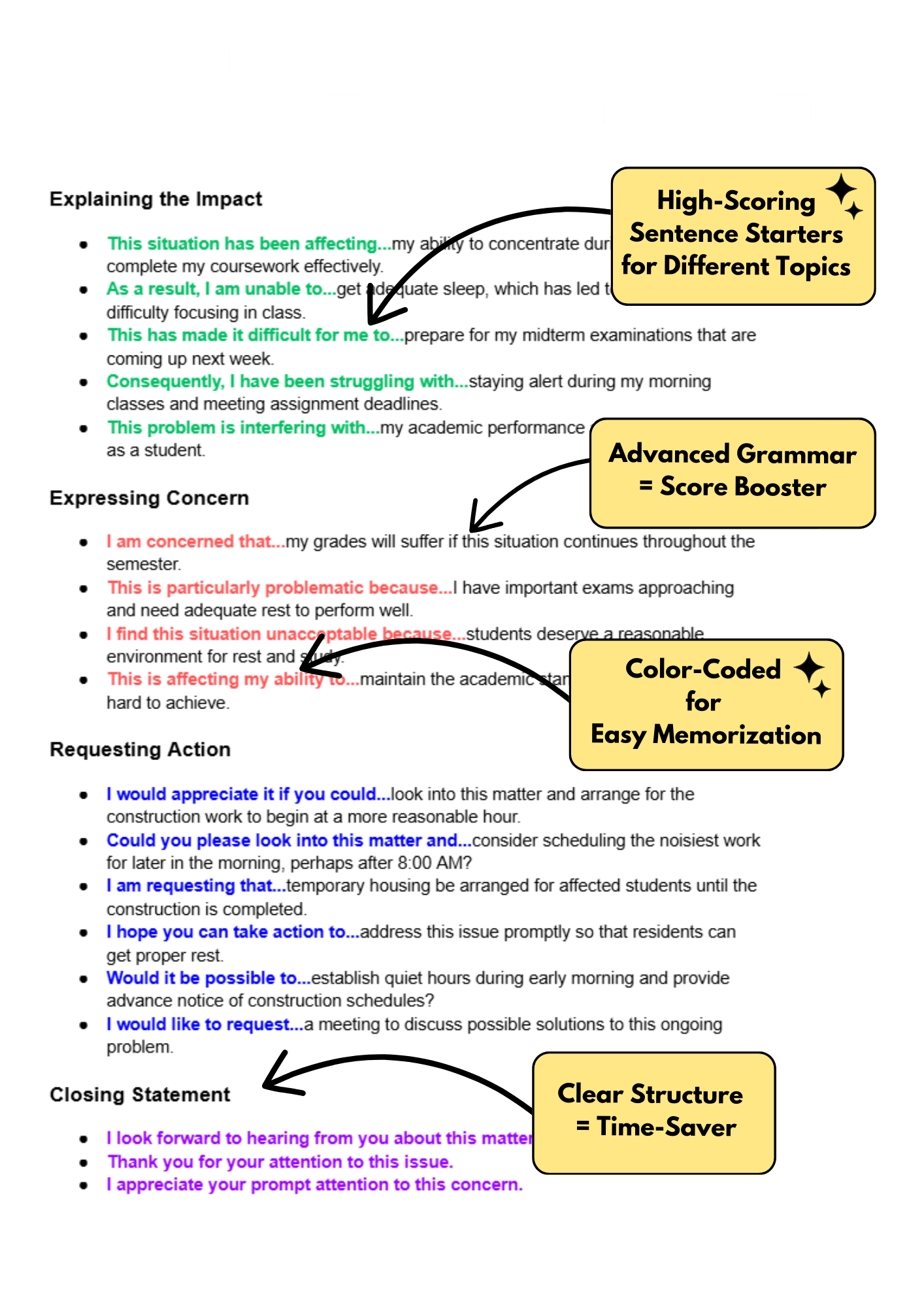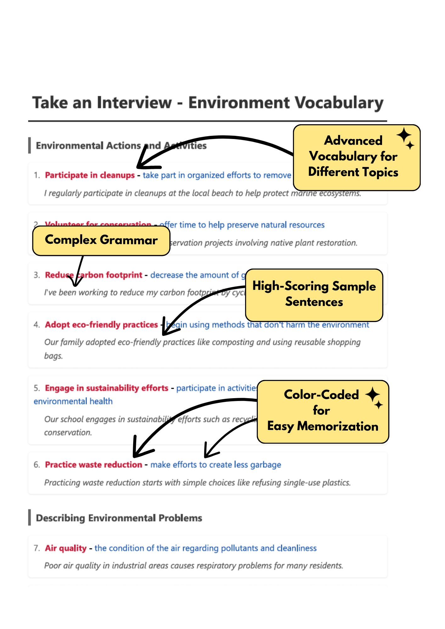 Access 15+ Templates with high-scoring sentence starters and sample sentences for TOEFL Speaking and Writing. Get access to Vocabulary Sheets with advanced vocabulary for TOEFL Speaking, Writing, Reading, and Listening.