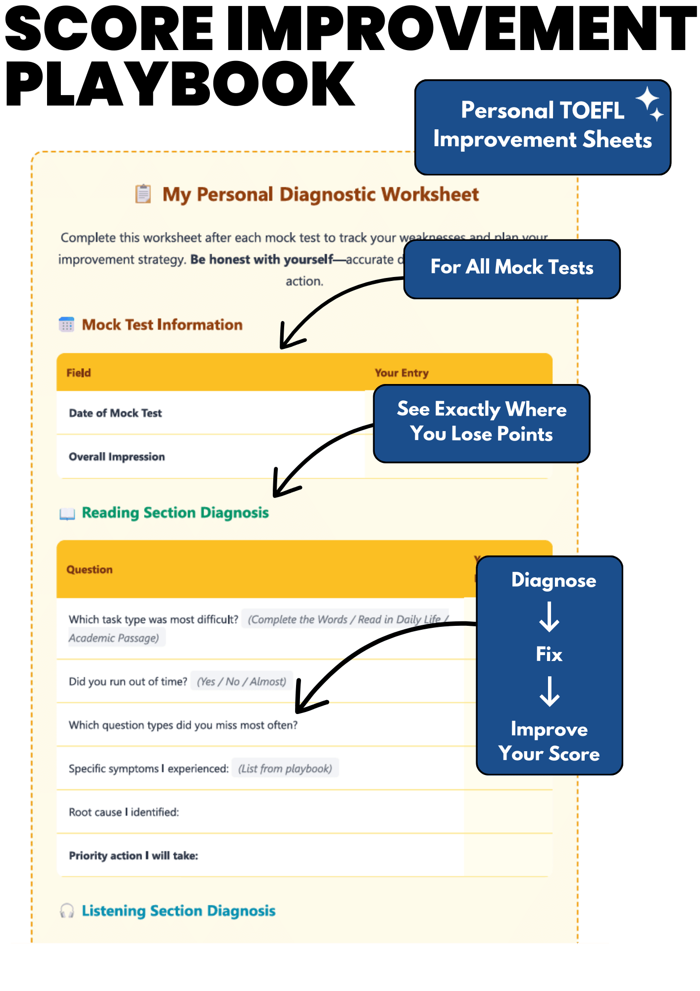 Make the most of your TOEFL preparation with our expert-designed study plans. Simply follow the plan to build stronger skills and approach the test with more confidence. No guesswork, no overwhelm! Study with clarity, structure, and a clear sense of progress.