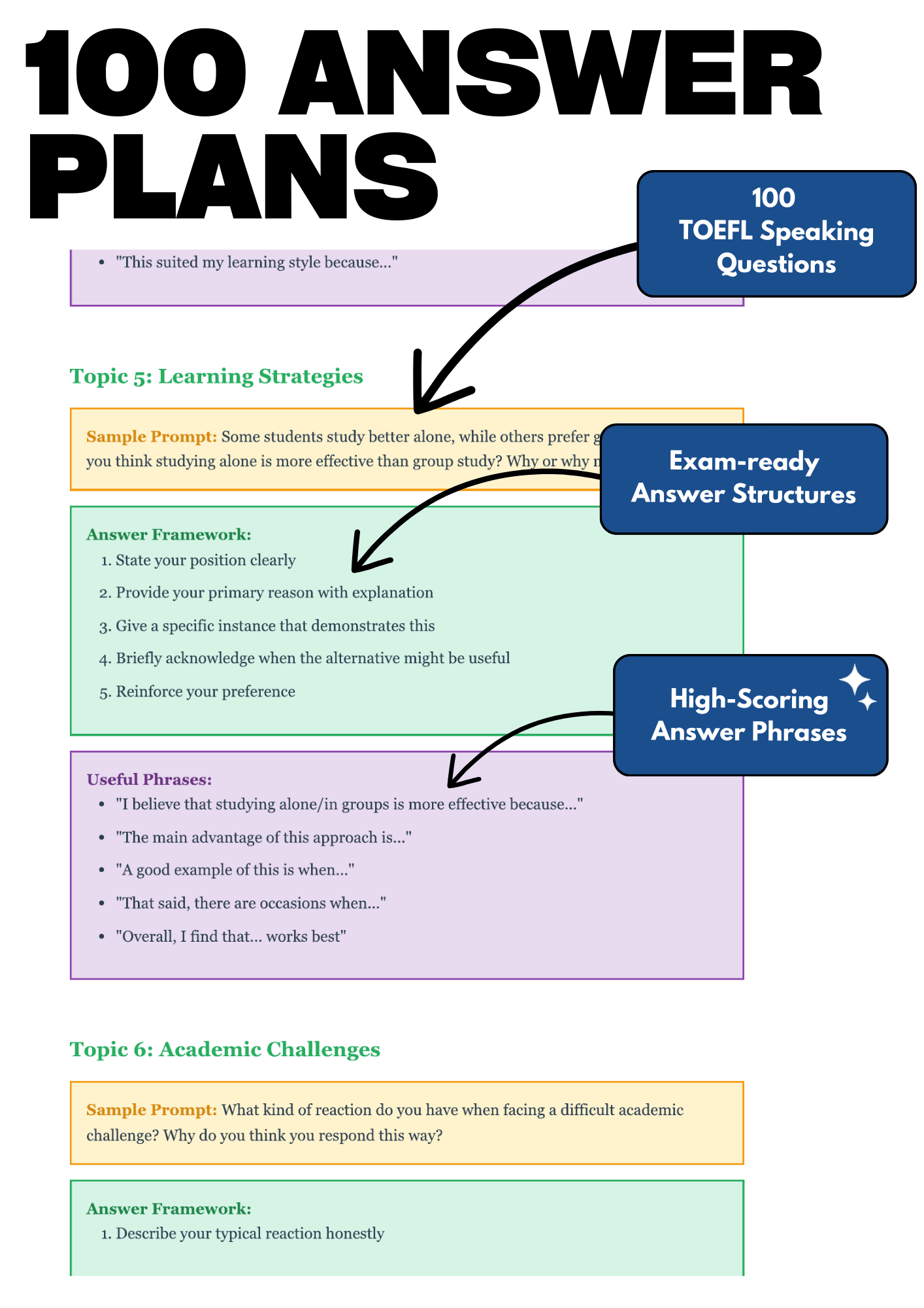 ⭐ 100 TOEFL Speaking Topics + Answer Plans
